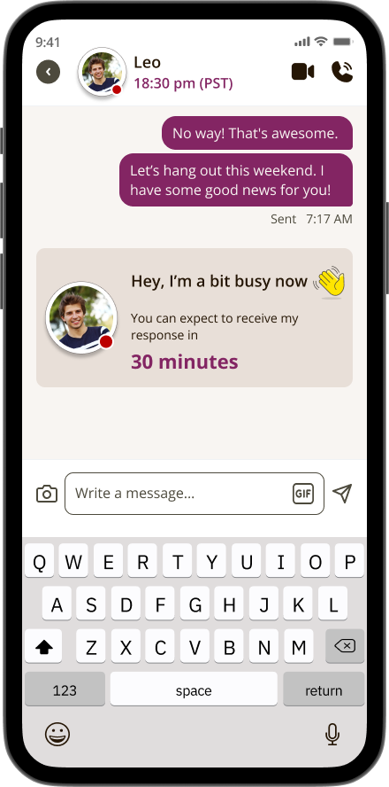 Solution: I introduced the Availability-Aware Message Delivery feature (the app sends personalized notifications with estimated response times from chat partners), creating a sense of real-time presence and boosting user engagement.