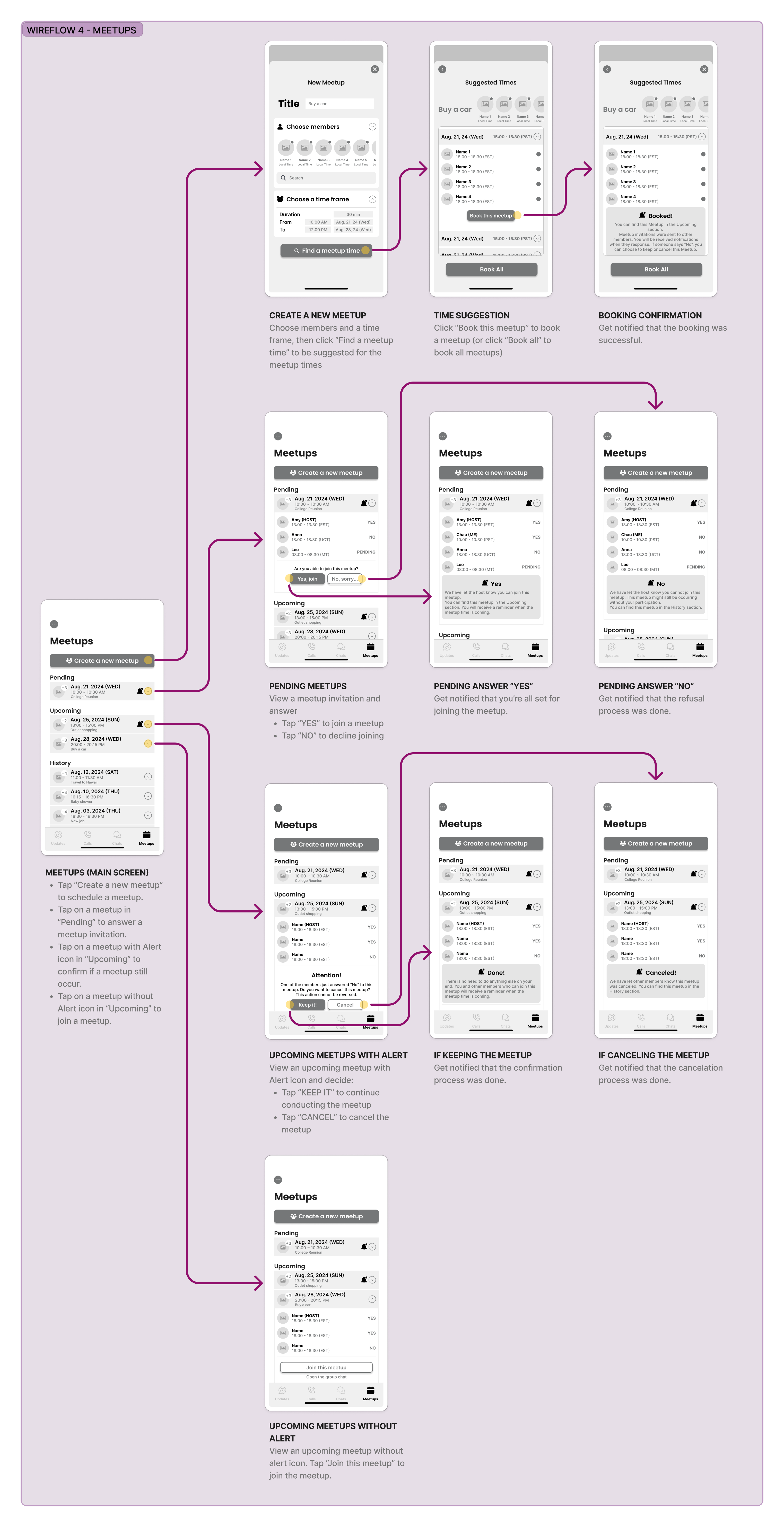 Developed wireflow for this net-new “Meetups” feature