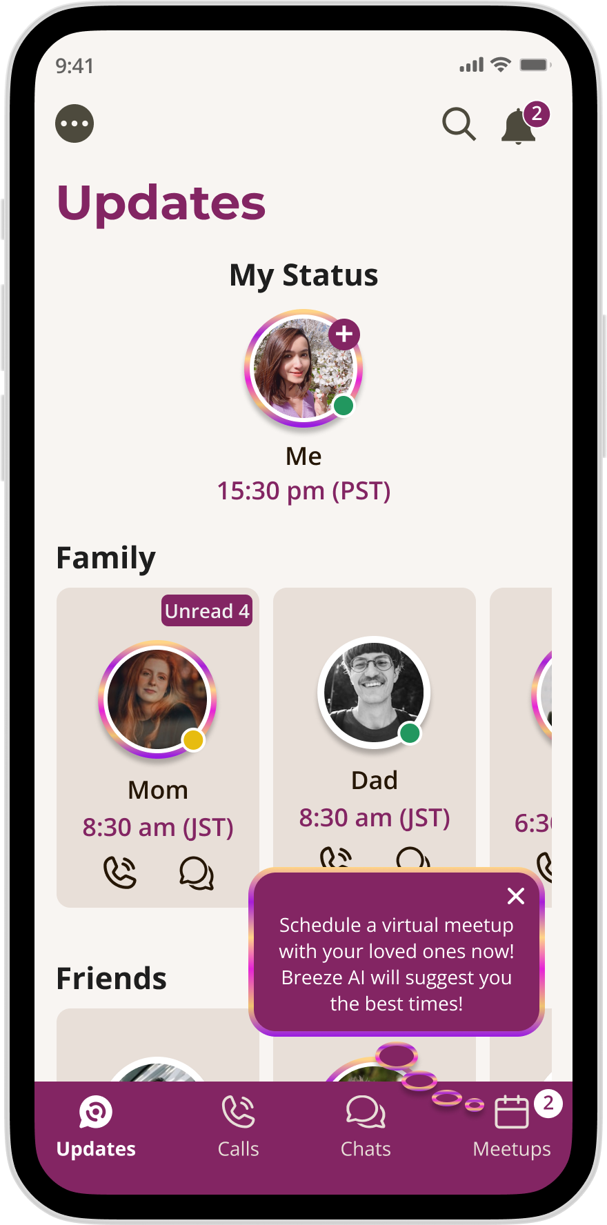 “I really like the instructive pop-up and the straightforward, intuitive process of the Meetups feature. It saved me time planning a family meetup!”